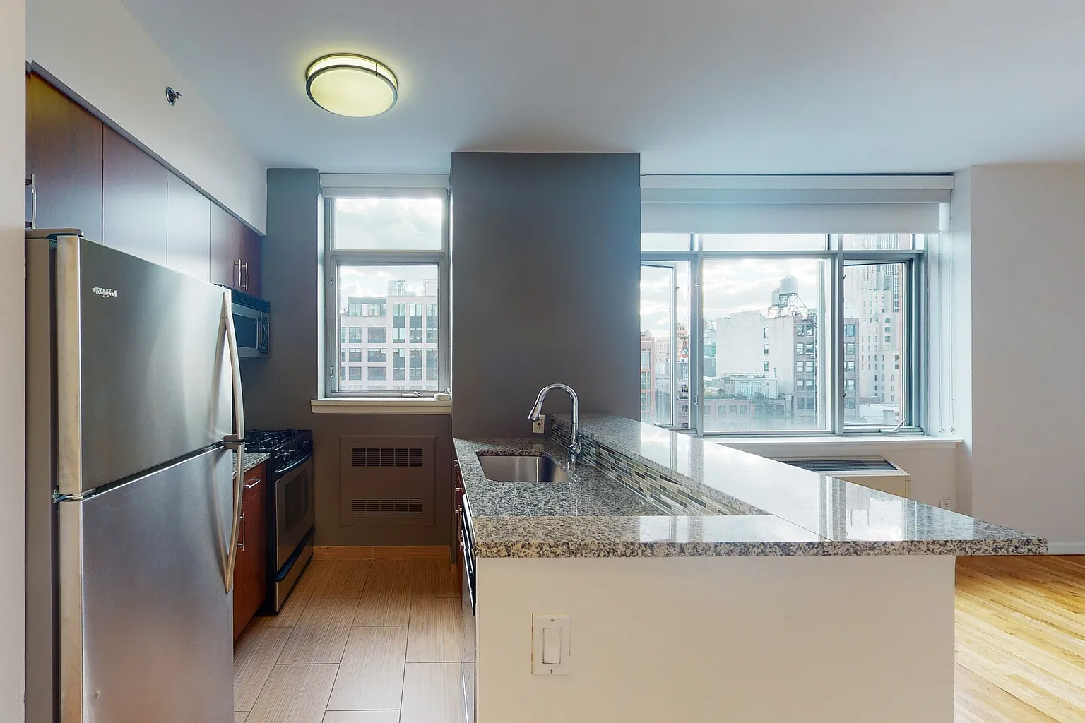 21 Chelsea is steps from the 23rd St subway, Union Square, Chelsea’s vibrant nightlife, and offers studio, one, and two bedroom apartments for rent. 21 Chelsea offers stylish apartments in New York City. These Chelsea apartments feature oak hardwood flooring and modern kitchens complete with stainless steel appliances. Enjoy our 24-hour concierge and doorman, premier resident services, and breathtaking views of New York City from our rooftop terrace. In addition, enjoy convenient access to the 23rd Street subway station, Union Square, and the vibrant nightlife of Chelsea. Quaint cafes, unique shops, and art galleries add to the neighborhood’s diversity. If you’re looking for luxury apartments near Chelsea Manhattan, tour 21 Chelsea today for upscale living. No Fee Apartments.